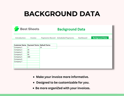 ā Invoice template -Ā Invoice Due date will be calculated automatically from the invoice date and term given in input. In case, input for term is not provided by the user, then the file will automatically go on with the default term value given in " Background data" sheet. The remarks are optional.