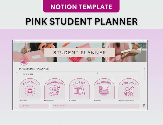 PLR Pink Notion Student Planner University Dashboard Aesthetic Student Planner School Planner Academic Planner Girl planner Girl notion MRR