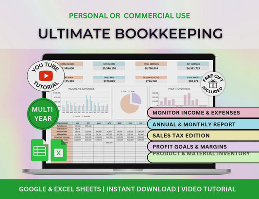 Small Business Excel Google Sheets Spreadsheet Bundle Bookkeeping Planner