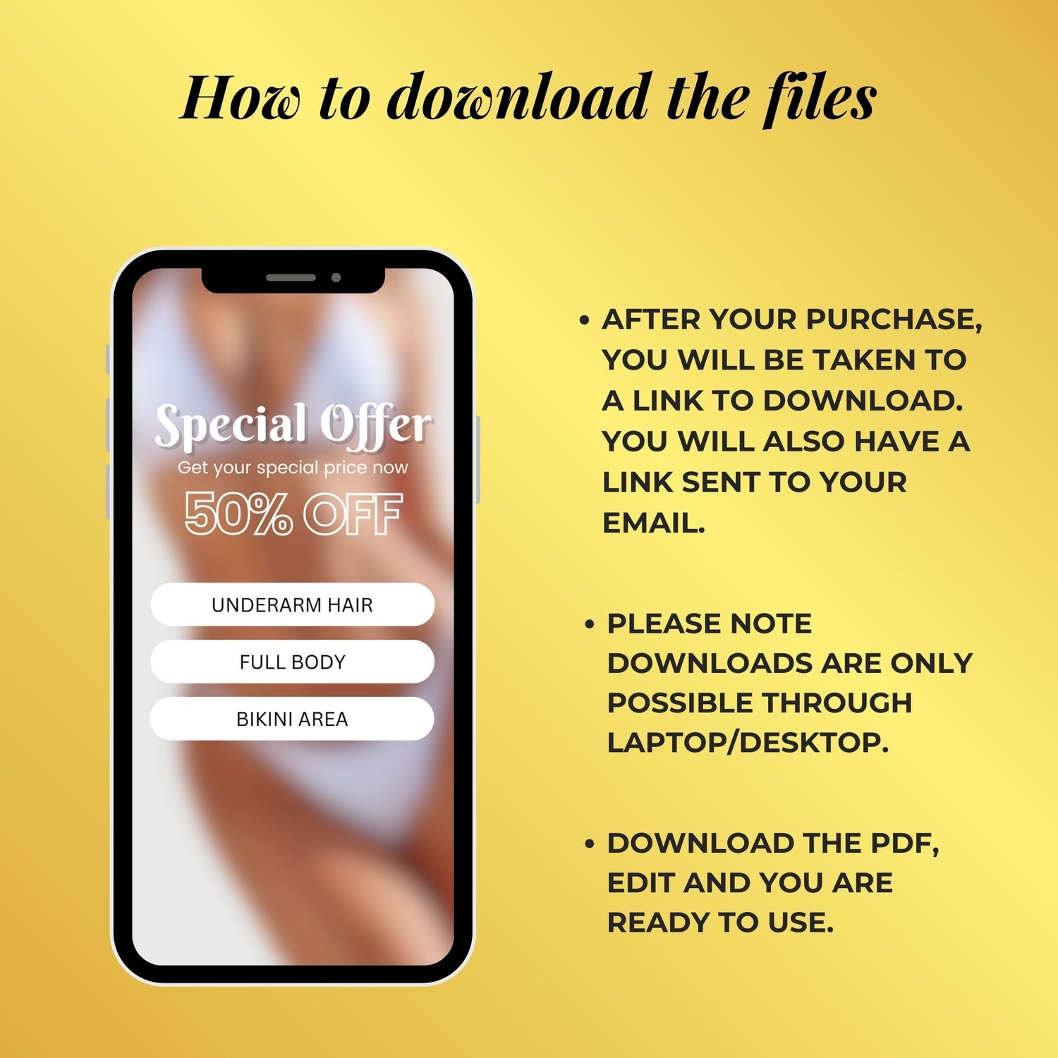 We provide source Mockup files in Canva plus separate PNG files with product description so you don't have to worry about creating Marketing Materials