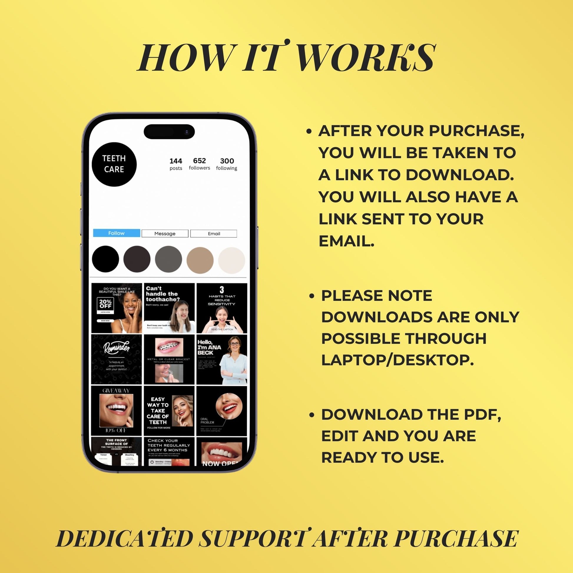 🌟 Here's how it works: Start by purchasing the template. Once your payment is confirmed, you will get the link to download the PDF immediately. You will also get an email to download the templates using the link provided in the PDF. Customize the designs to perfectly match your brand. After that, simply post them on your Instagram and enjoy a visually stunning feed.