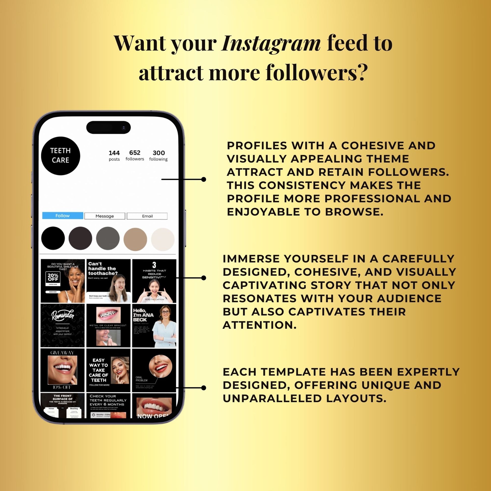 60 Teeth Whitening Social Media Post Template | Tooth Gem Instagram Templates