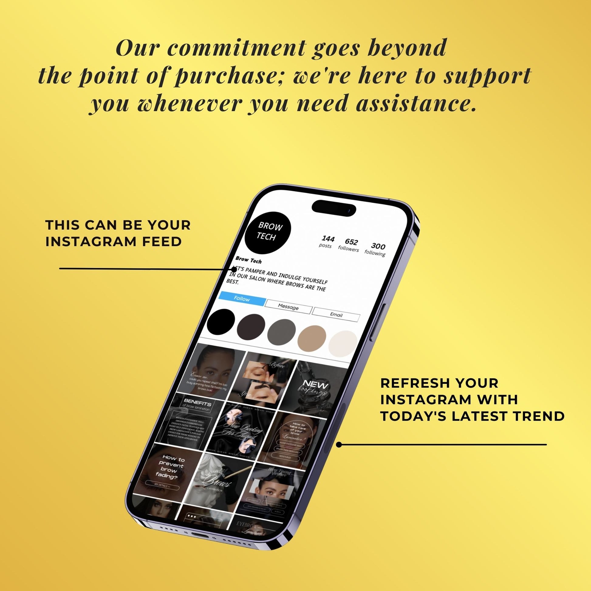Our Brow Tech templates are designed to simplify your posting schedule and enhance your online presence. These templates are not only easy to use but also fully customizable, ensuring your content stands out and engages your audience effectively. Shine in the crowded beauty market and draw in clients who recognize and seek top-notch quality and professionalism.