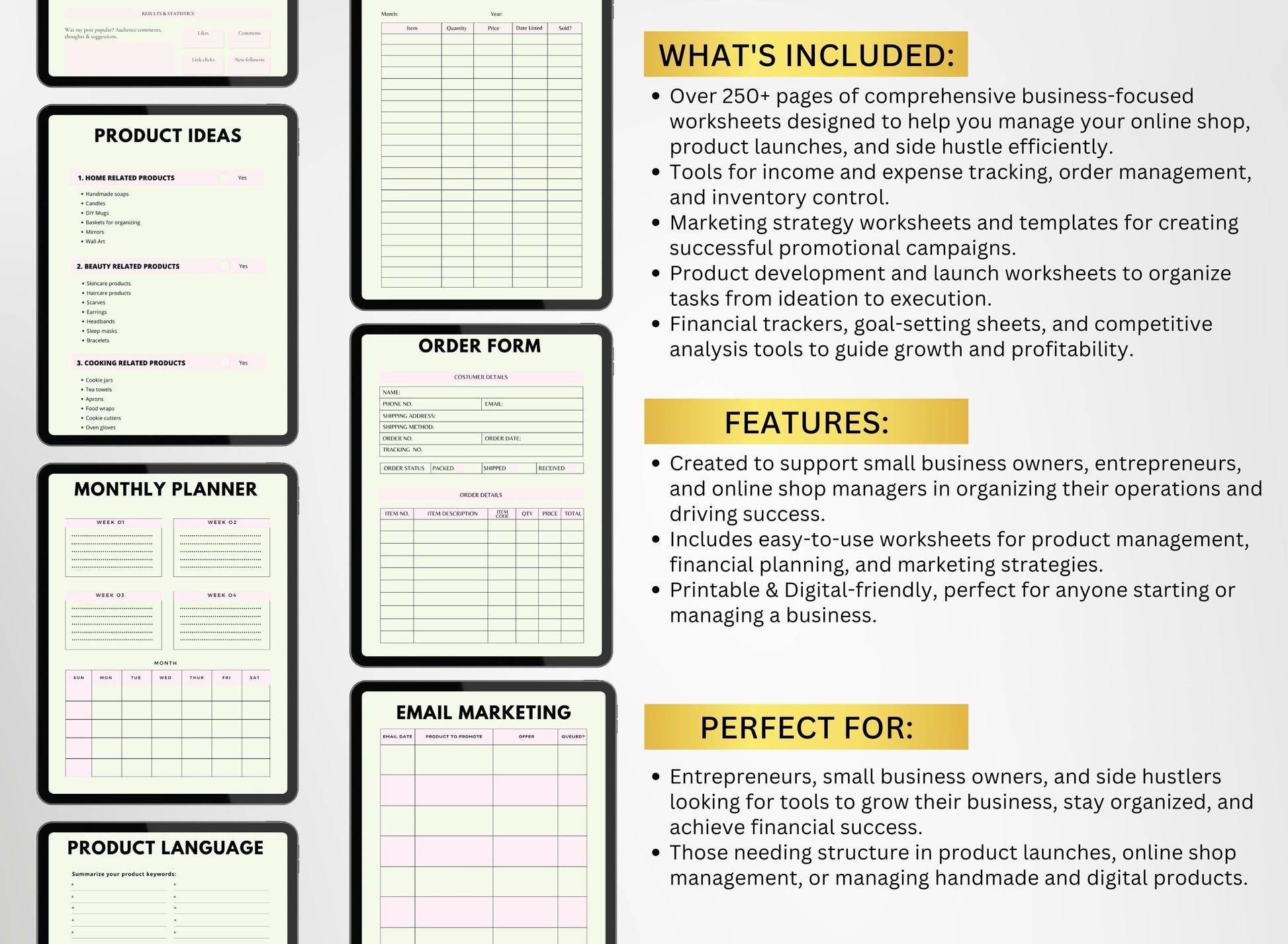 ✨ Our PRINT FRIENDLY AND FILLABLE ETSY and ONLINE SHOP WORKSHEETS IN A4 Size and US Letter are designed to help entrepreneurs, small business owners, and digital sellers streamline their workflow, track progress, and optimize their online stores. These worksheets feature structured templates, guided prompts, and business planning tools to assist with product research, pricing strategies, marketing plans, and sales tracking. Whether you're launching a new shop, improving your listings, or managing orders, these resources provide a practical framework for success. 🚀