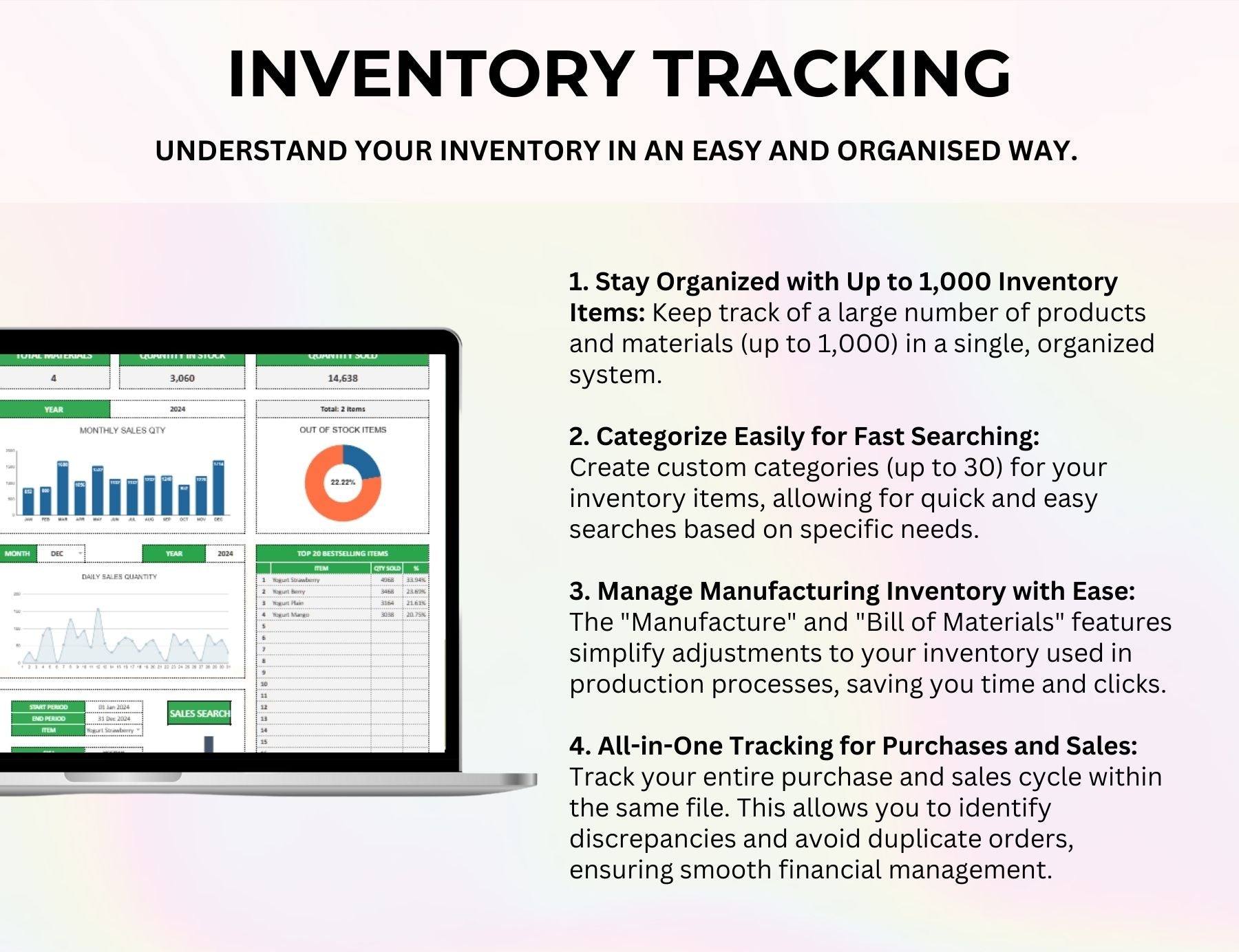 INVENTORY TRACKER SPREADSHEET in EXCEL AND GOOGLE SHEETS - PERSONAL OR COMMERCIAL USE