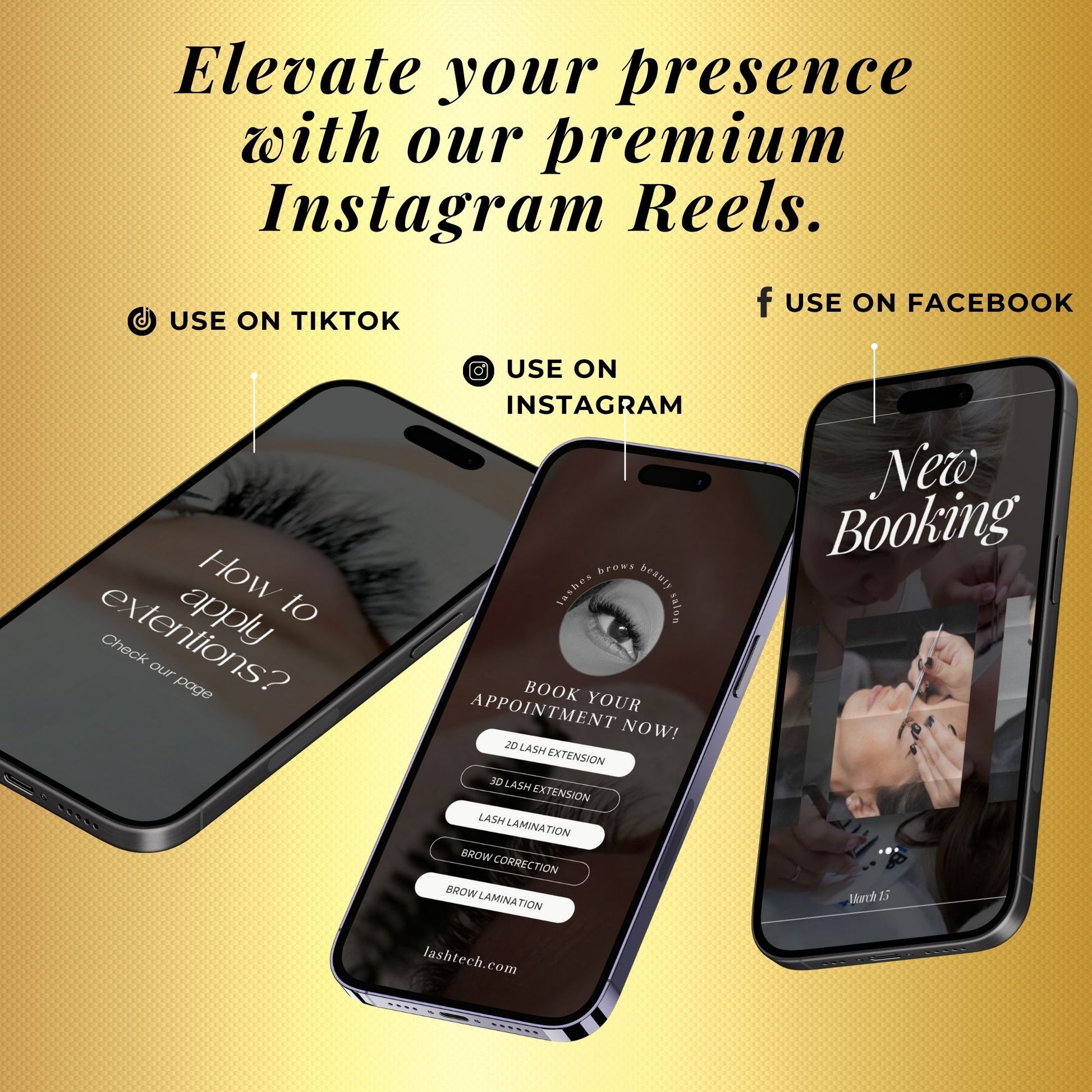 Our lash tech social media reels are designed to simplify your posting schedule and enhance your online presence. These templates are not only easy to use but also fully customizable, ensuring your content stands out and engages your audience effectively. Shine in the crowded beauty market and draw in clients who recognize and seek top-notch quality and professionalism.