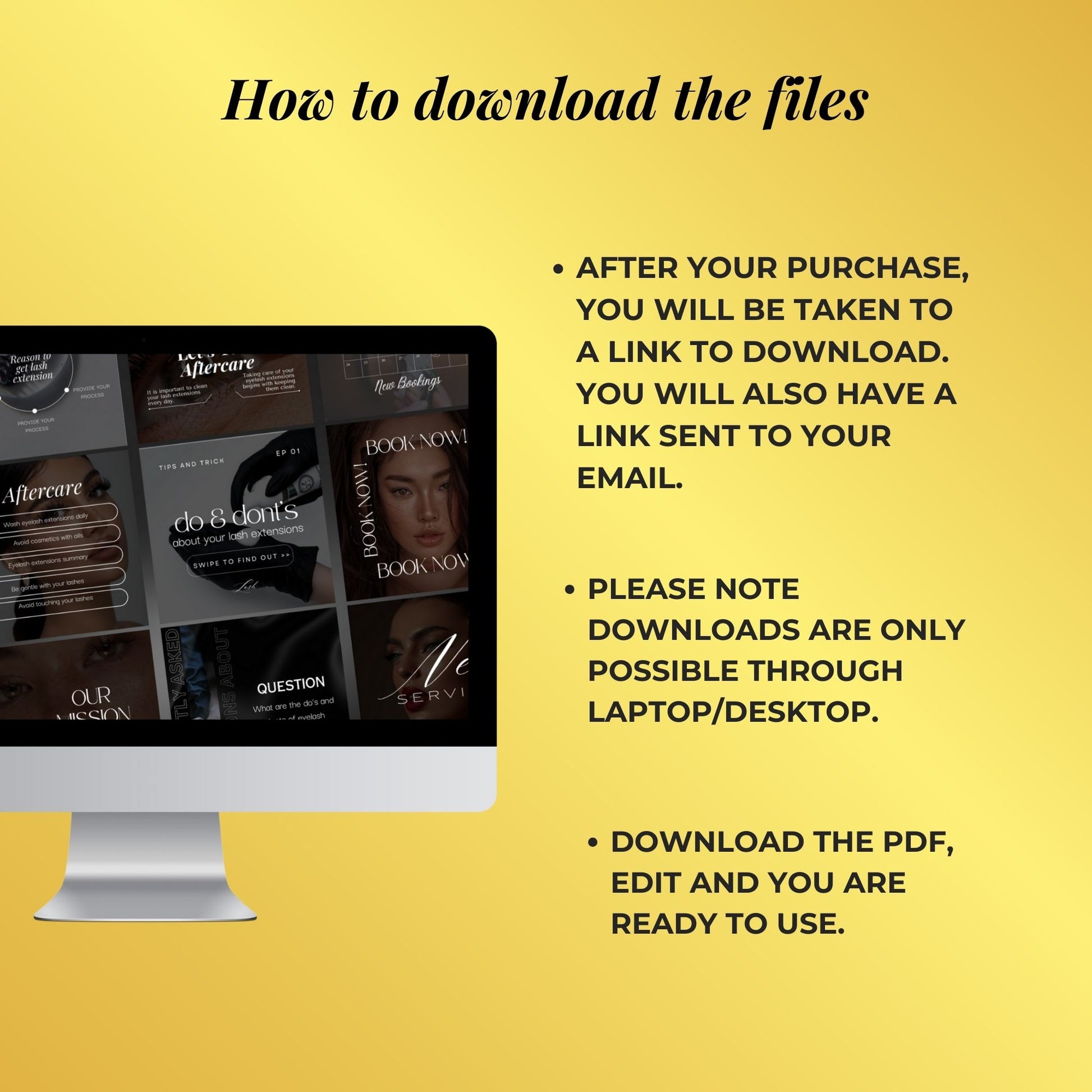 🌟 Here's how it works: Start by purchasing the template. Once your payment is confirmed, you will get the link to download the PDF immediately. You will also get an email to download the templates using the link provided in the PDF. Customize the designs to perfectly match your brand. After that, simply post them on your Instagram and enjoy a visually stunning feed.