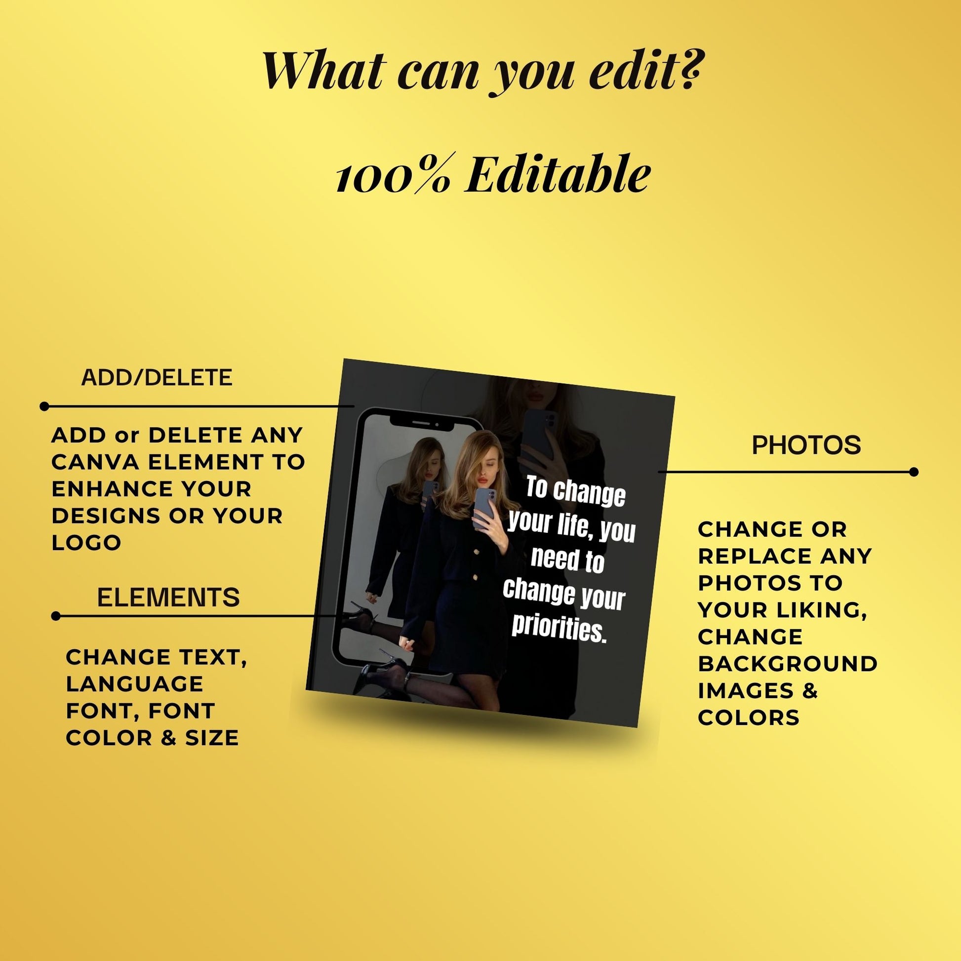 π Here's how it works: Start by purchasing the template. Once your payment is confirmed, you will get the link to download the PDF immediately. You will lso get an email to download the templates using the link provided in the PDF. Customize the designs to perfectly match your brand. After that, simply post them on your Instagram and enjoy a visually stunning feed.
