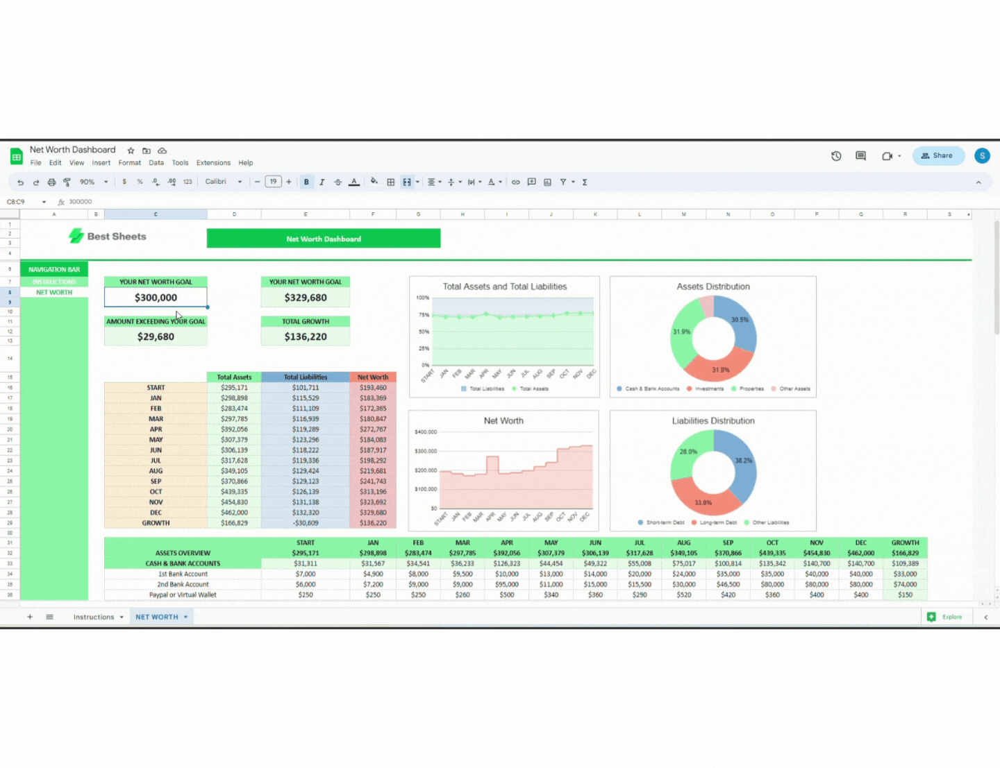 Net Worth Tracker Spreadsheet in Excel and Google Sheets