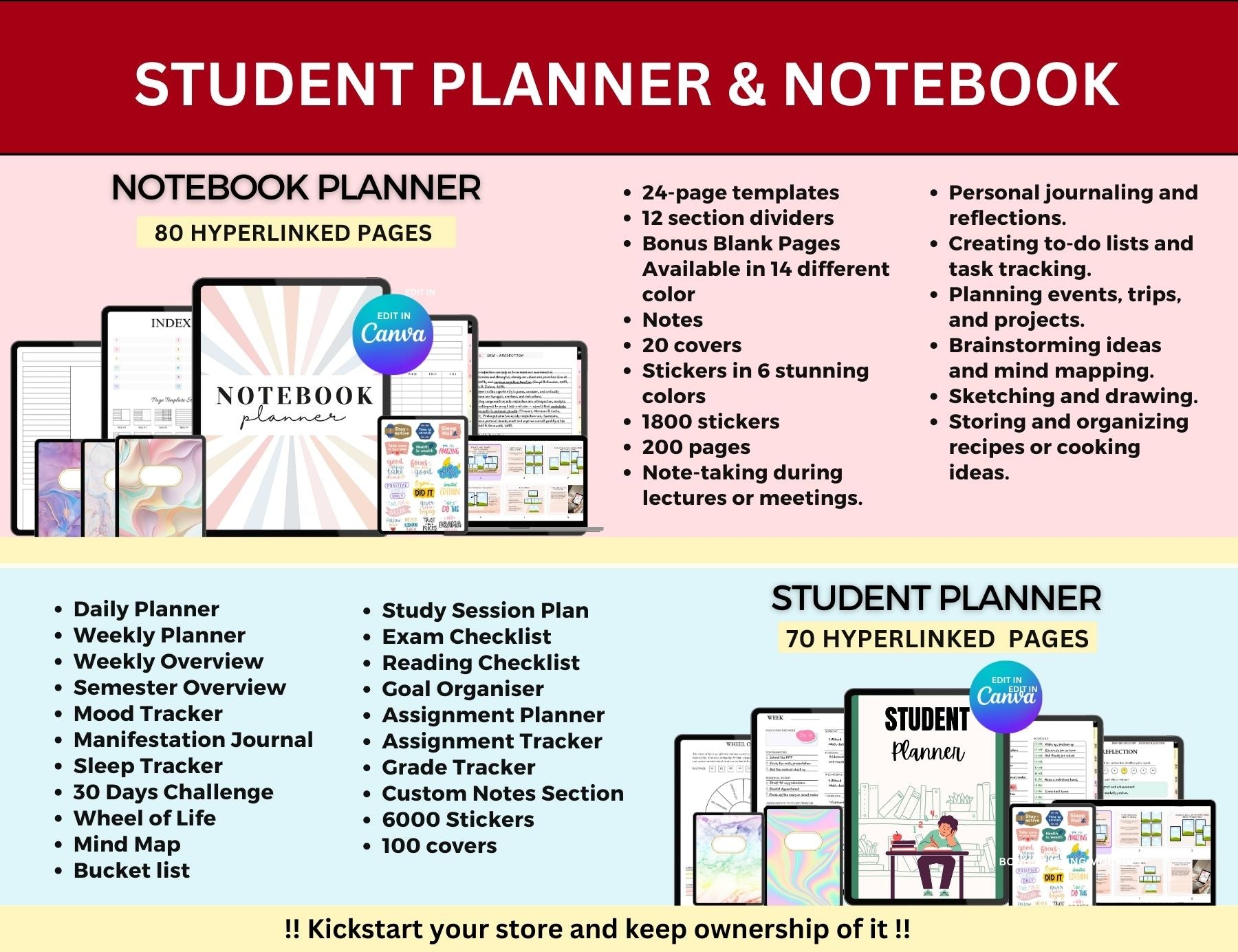 Introducing our Ultimate Digital Planner Bundle - This bundle includes all the PLR HYPERLINED DIGITAL PLANNERS ON THE SHOP AT A MASSIVE BUNDLE DISCOUNT. Each of these planners lets you customize your journals to match your style and brand using Canva. You can edit colors, fonts, and layouts, language - literally anything - making it unique for your customers. With a commercial use license, you can market and distribute this digital product as your own, making money for your business. No need to add all the products to the cart when you have the bundle! Save yourself months and thousands of dollars spending on freelancers to get the job done!