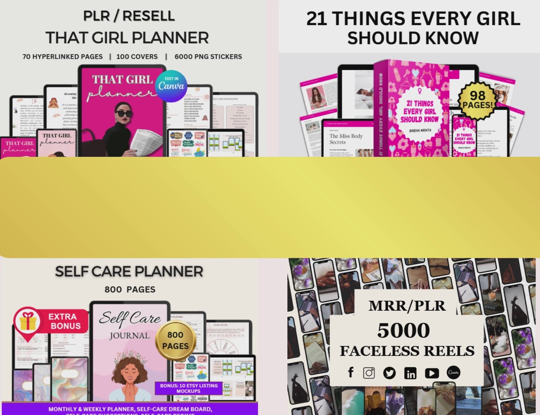 PLR Girl Bundle - Planner, Ebook, Self Care, Faceless Reels