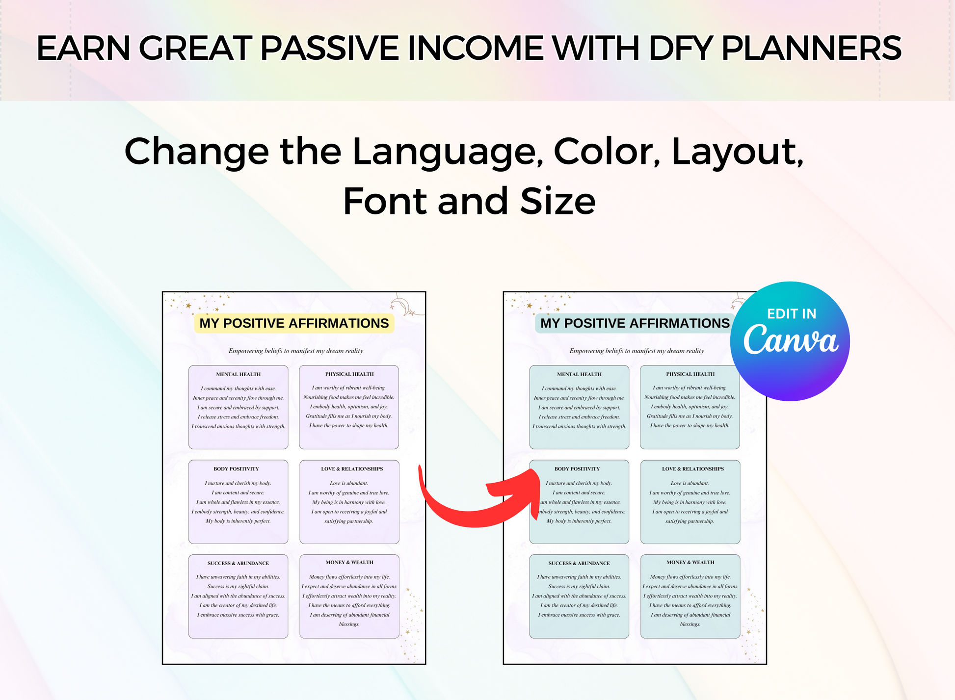 ā Editable PLR Canva Manifestation 70 Printable Planner