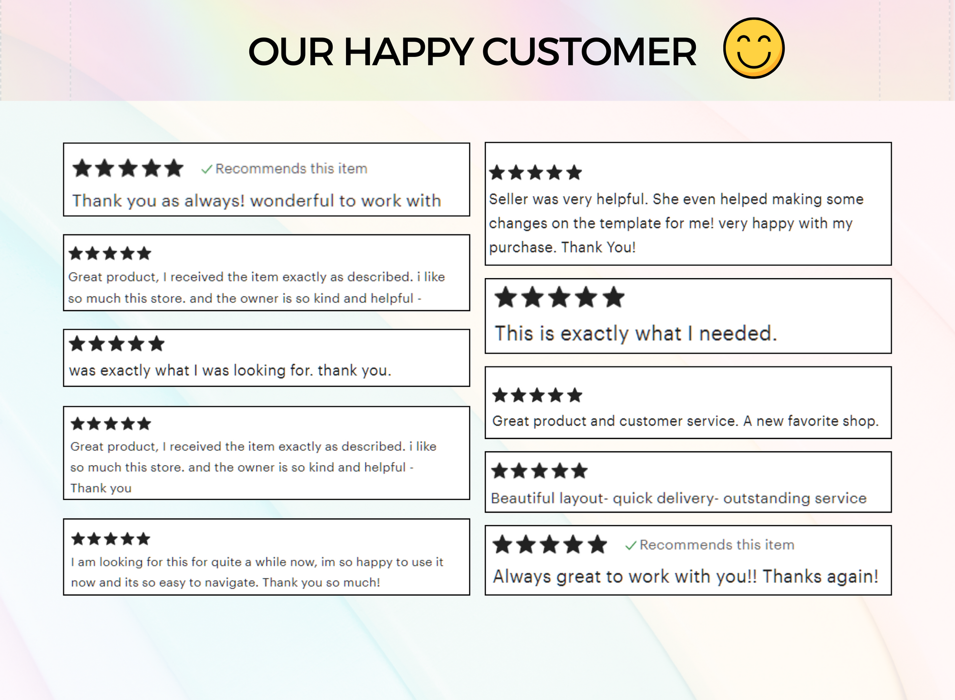 Once you have the PDF that contain the links to Google Sheets/Canva or Excel templates, you save this PDF to your computer or laptop, and you always have access to the original design and don't need to download it over and over again.