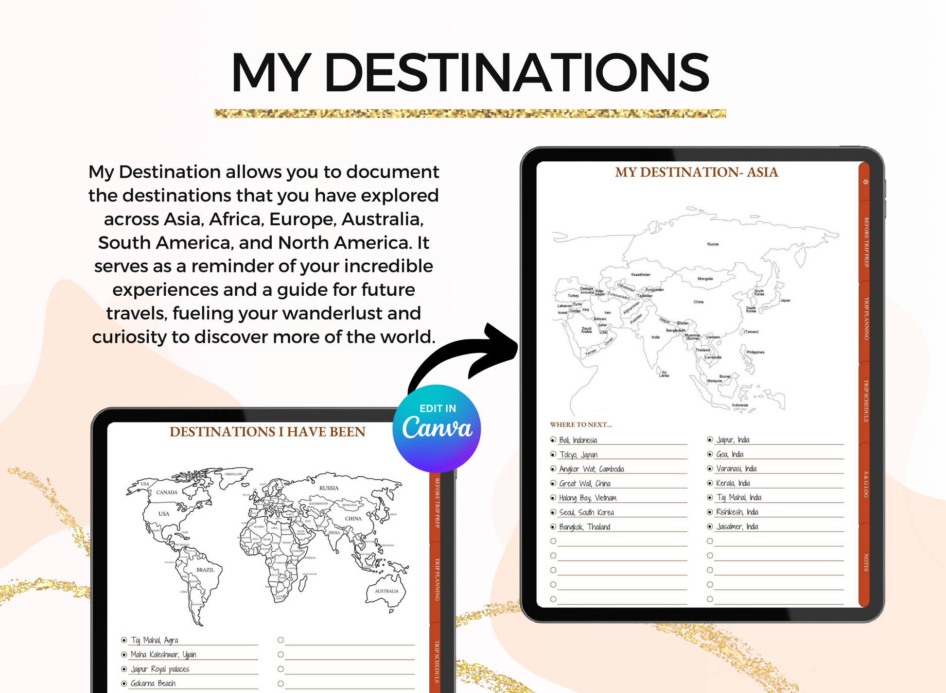 📅 1 PDF containing our Editable Travel Planner template.