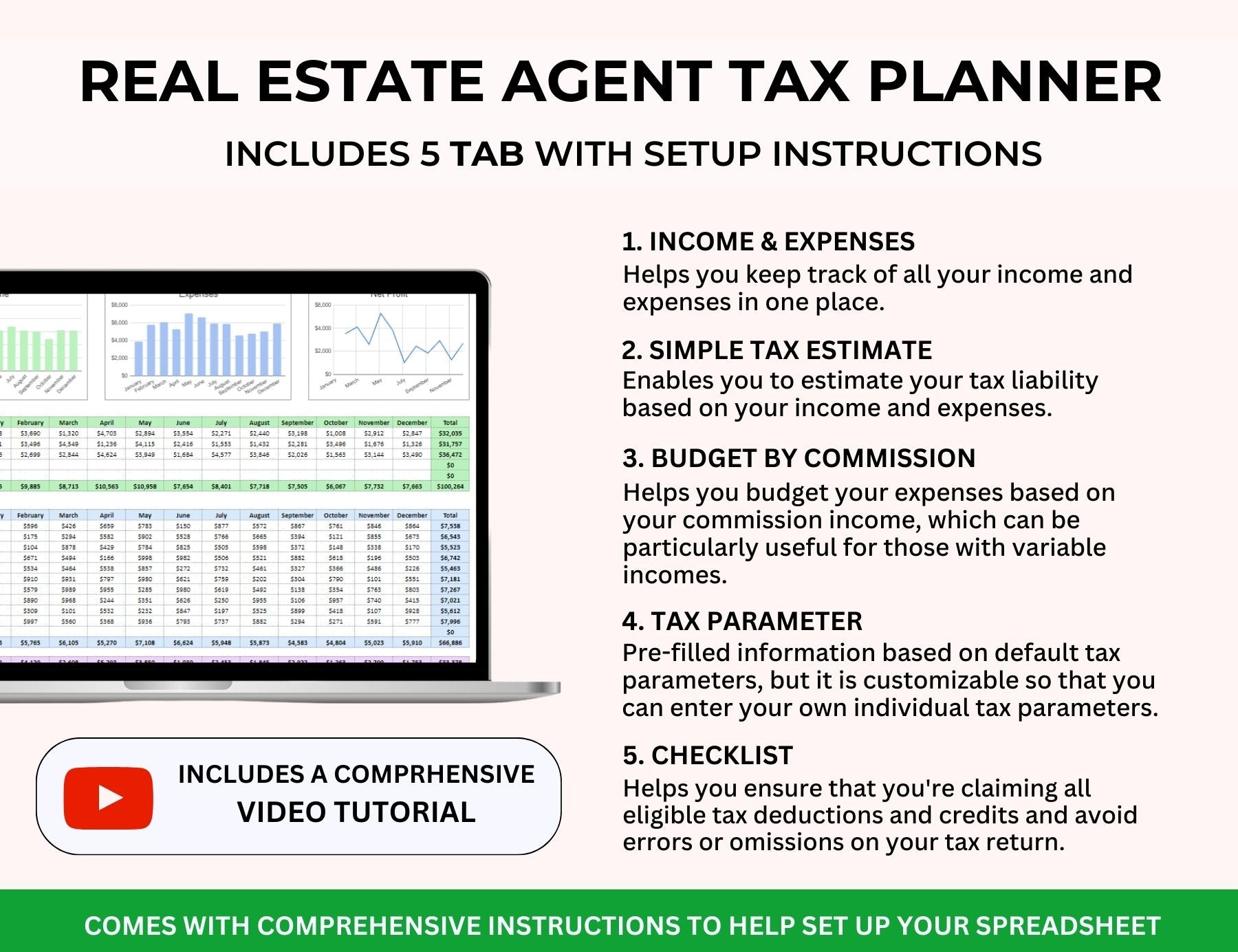 REAL ESTATE AGENT TAX TRACKER ( 5 Tabs)