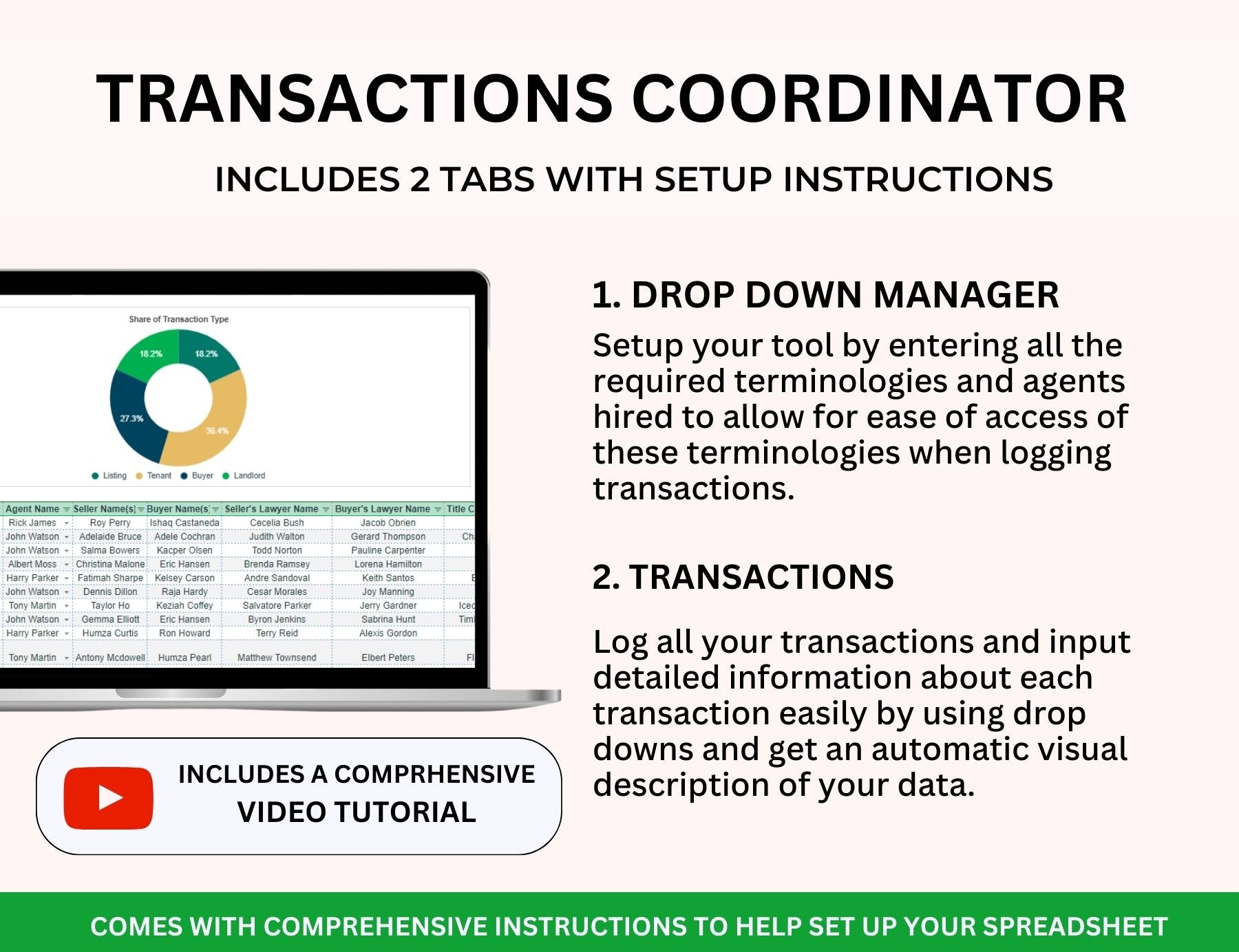 REAL ESTATE TRANSACTION COORDINATOR TRACKER ( 2 Tabs)