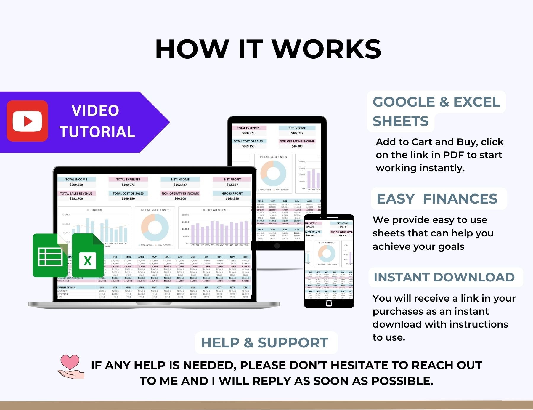 ⢠INSTRUCTIONS - Detailed guide, video tutorial and a sample spreadsheet with mockup data