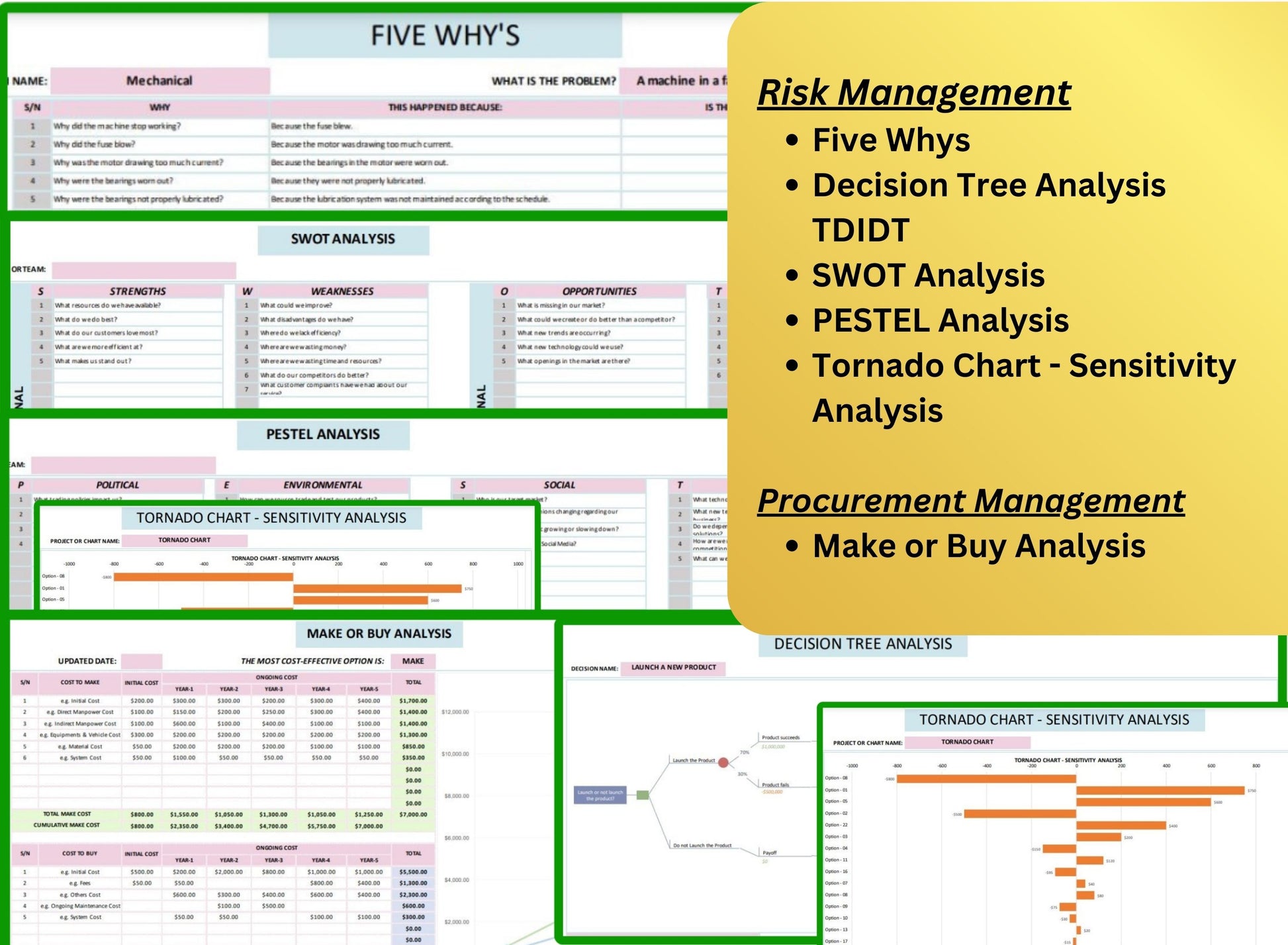 Welcome to our Exclusive Project Management Bundle designed to take care of your entire business. It's built on both Microsoft Excel and Powerpoint, offering the latest features for tracking tasks and planning projects. A must to help you get ahead in your job and career.Ā