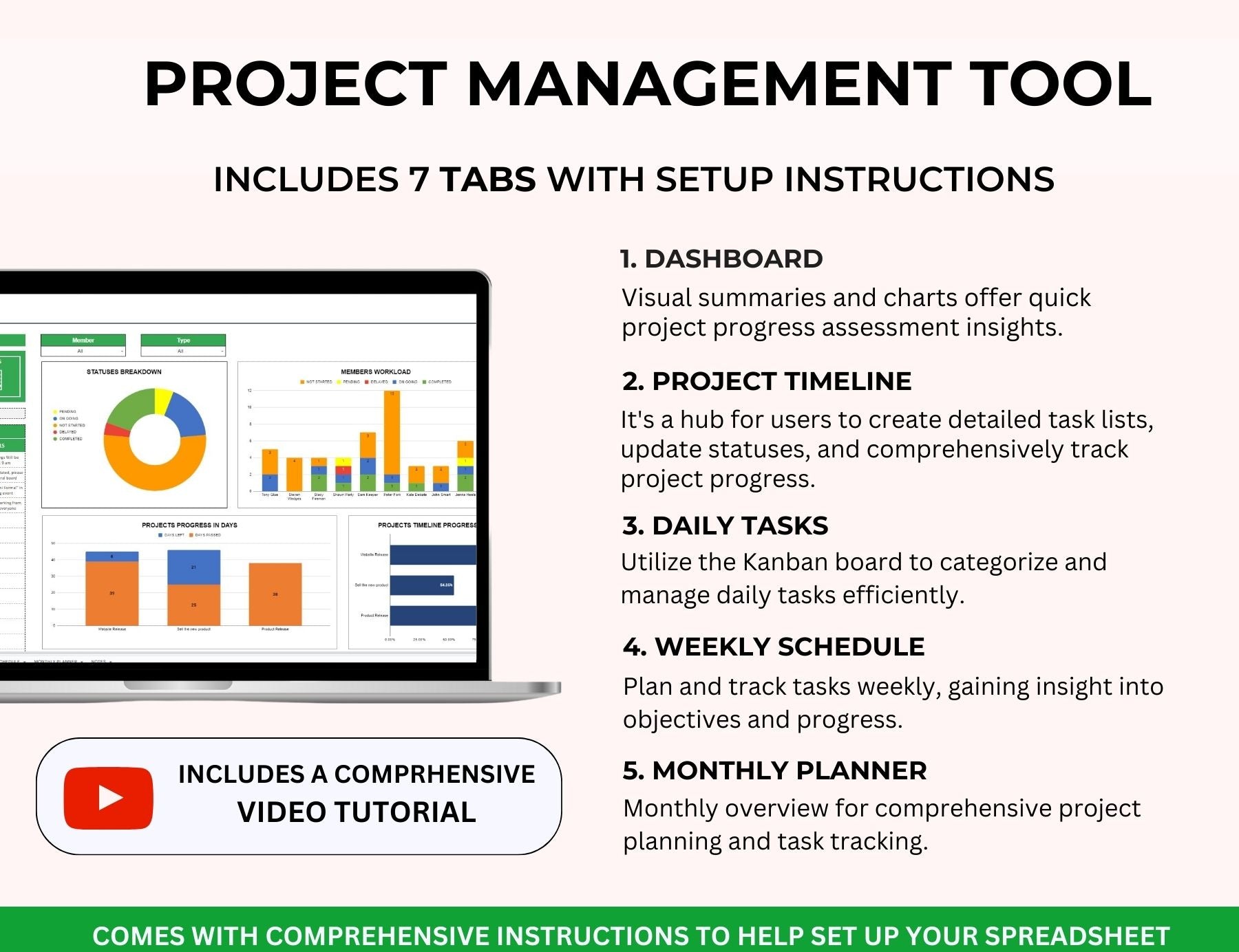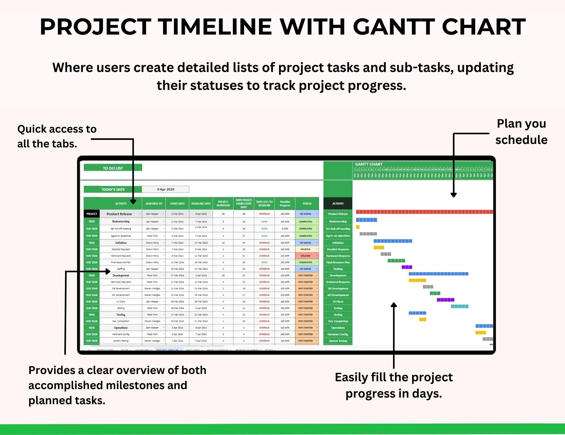 Project Management Spreadsheet Template with Gantt Chart - EXCEL AND GOOGLE SHEETSĀ