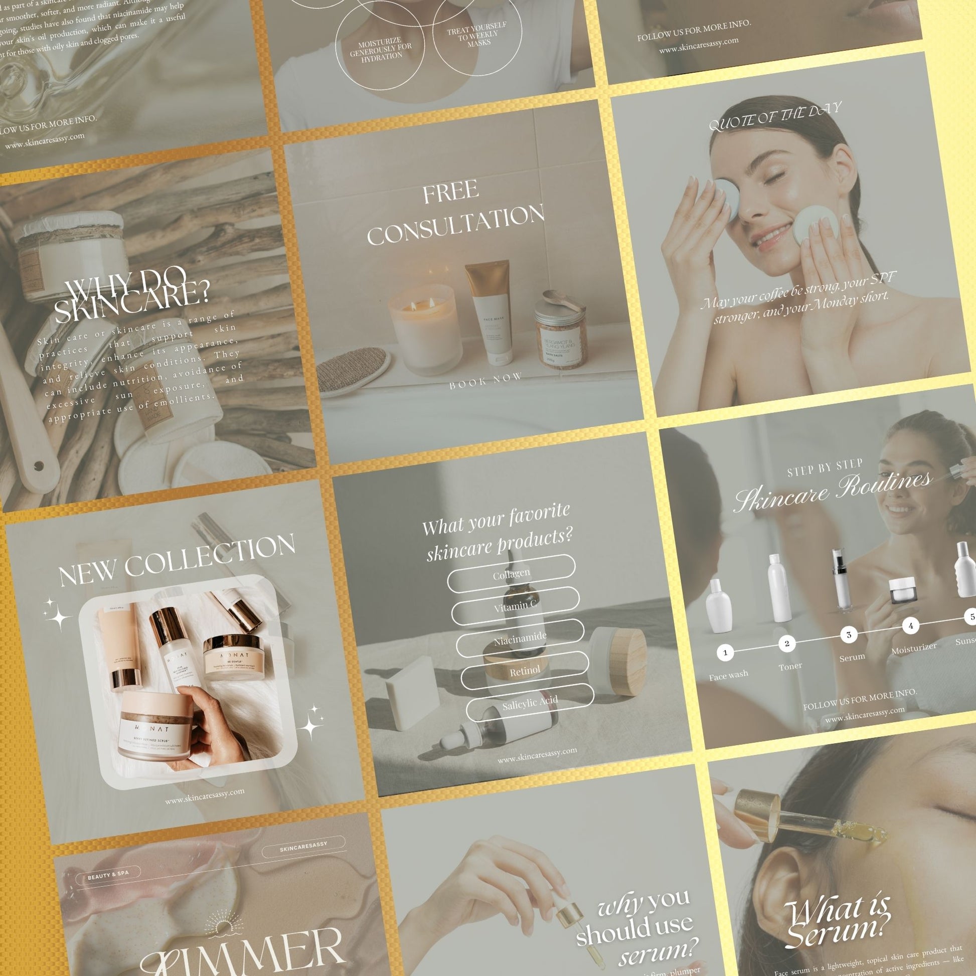 Shine in the crowded beauty market and draw in clients who recognize and seek top-notch quality and professionalism. Our skincare  social media templates are designed to simplify your posting schedule and enhance your online presence. These templates are not only easy to use but also fully customizable, ensuring your content stands out and engages your audience effectively.