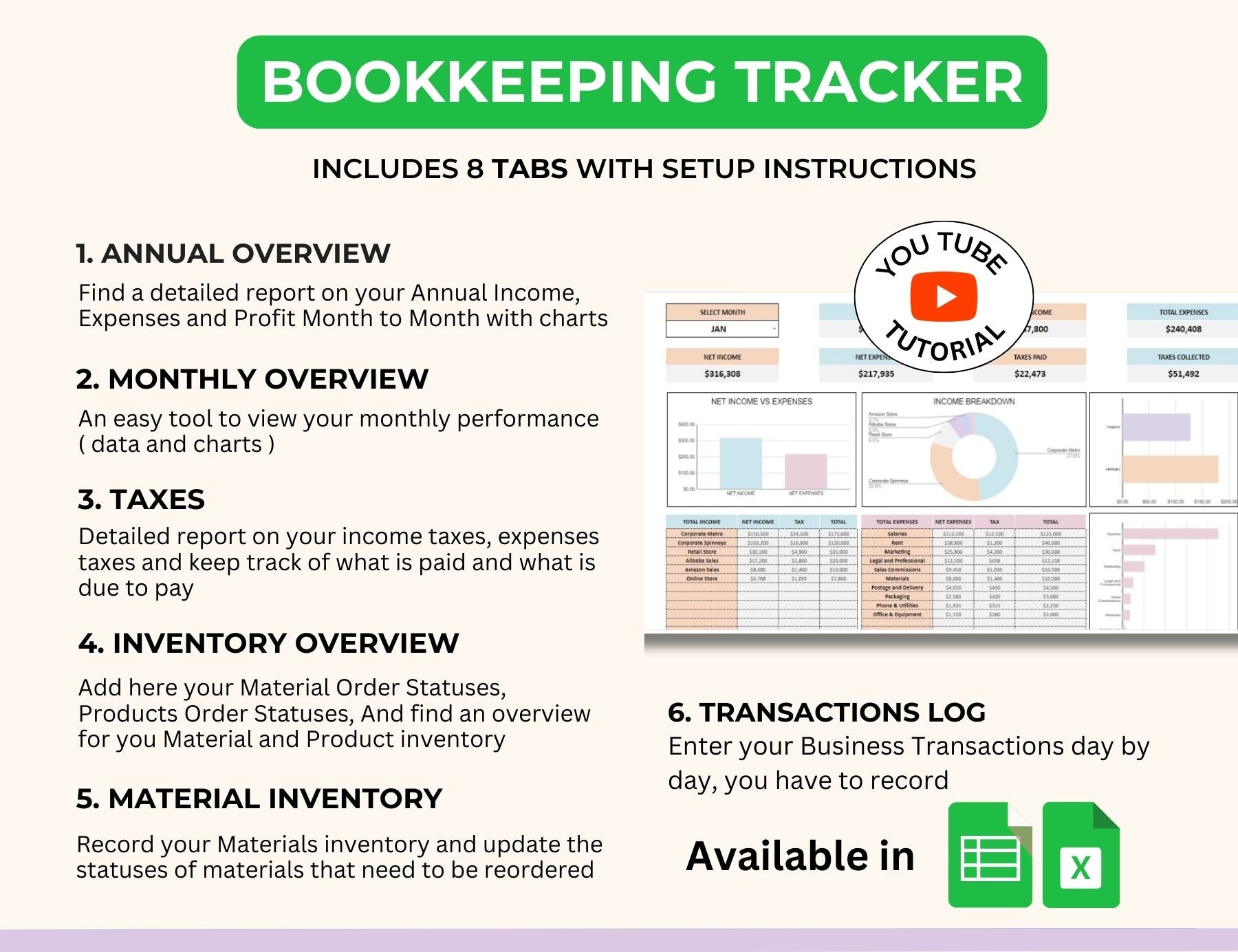 ā”ļø SMALL BUSINESS BOOKKEEPING GOOGLE SHEETS AND EXCEL Ā ( 8 TABS )