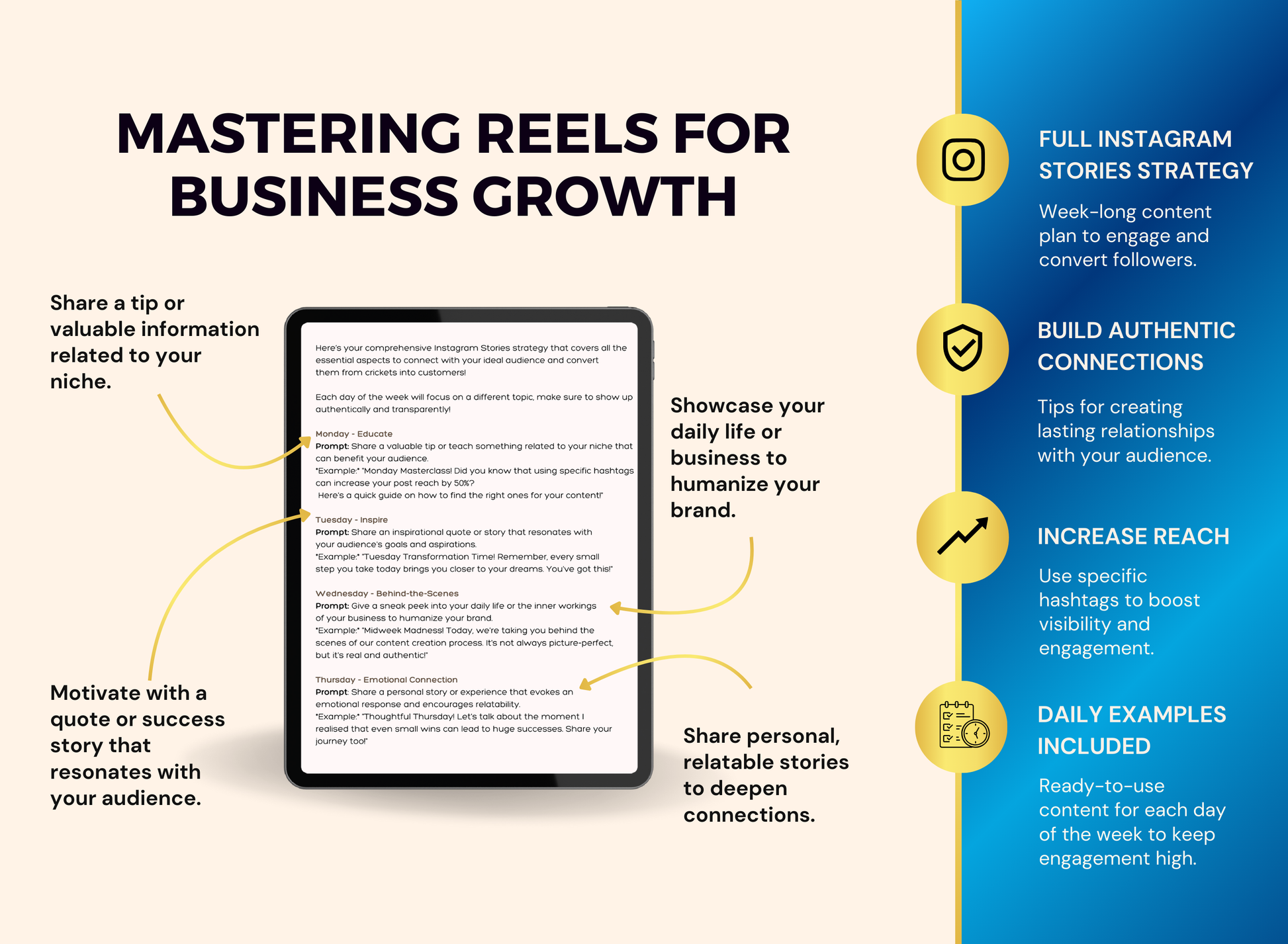 ✅Includes ready-to-use story frameworks and content ideas for consistent posting