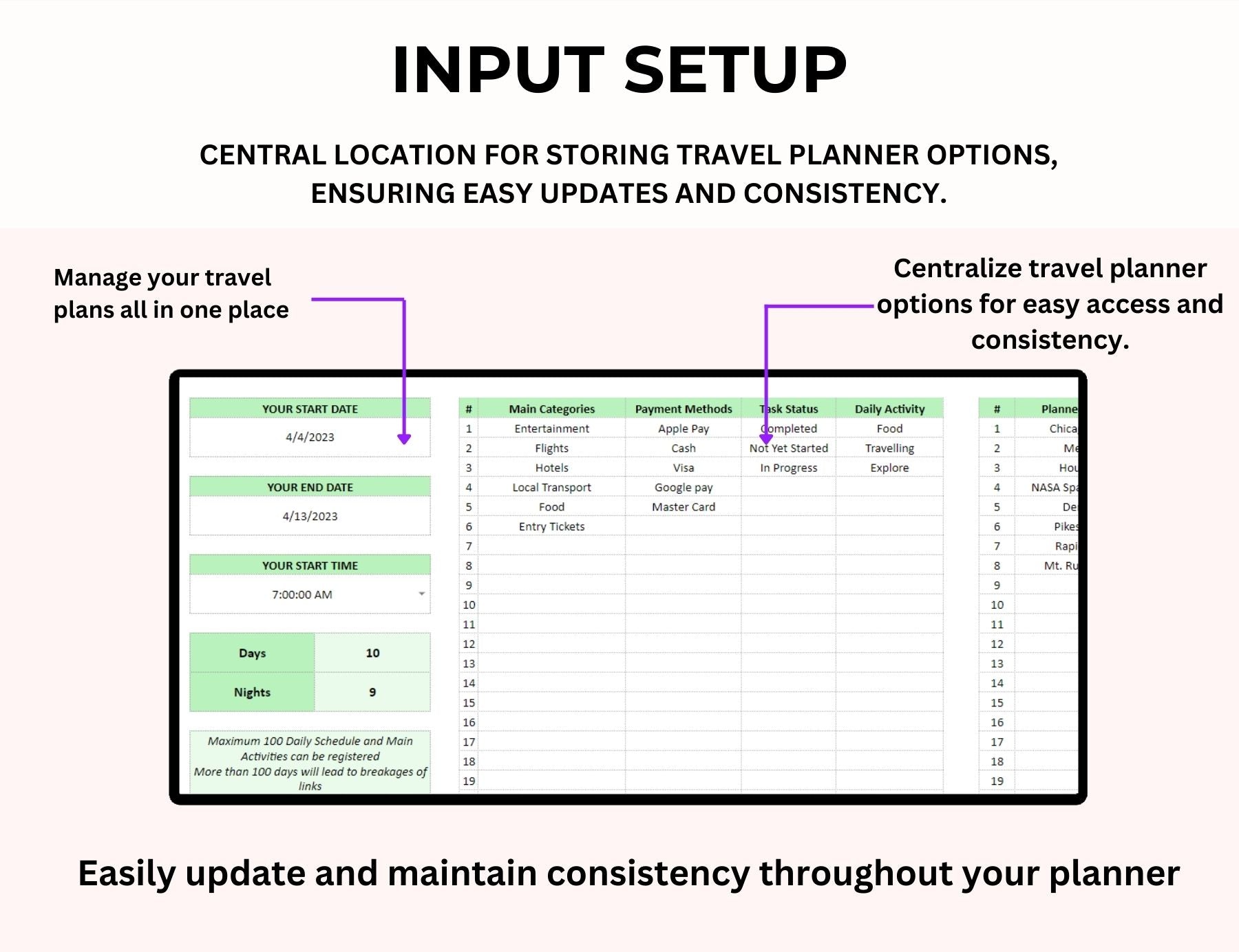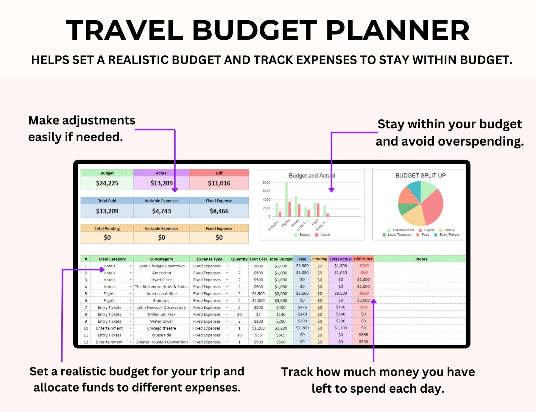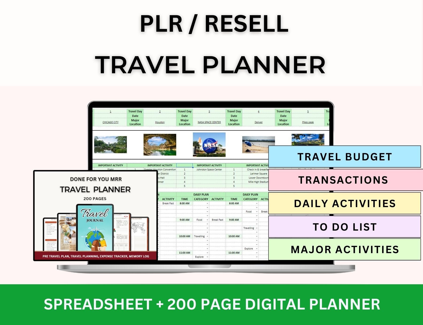 š MRR PLR TRAVEL PLANNER SPREADSHEET + TRAVEL DIGITAL PLANNER Ā